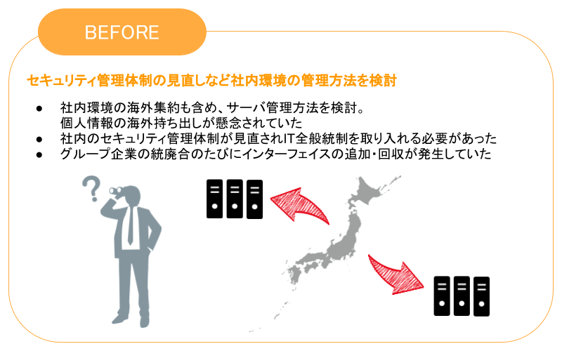 ・社内環境の海外集約も含め、サーバ管理方法を検討。